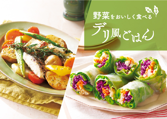 スナップえんどうと肉みその生春巻き/鰆と春野菜のオーブン焼き